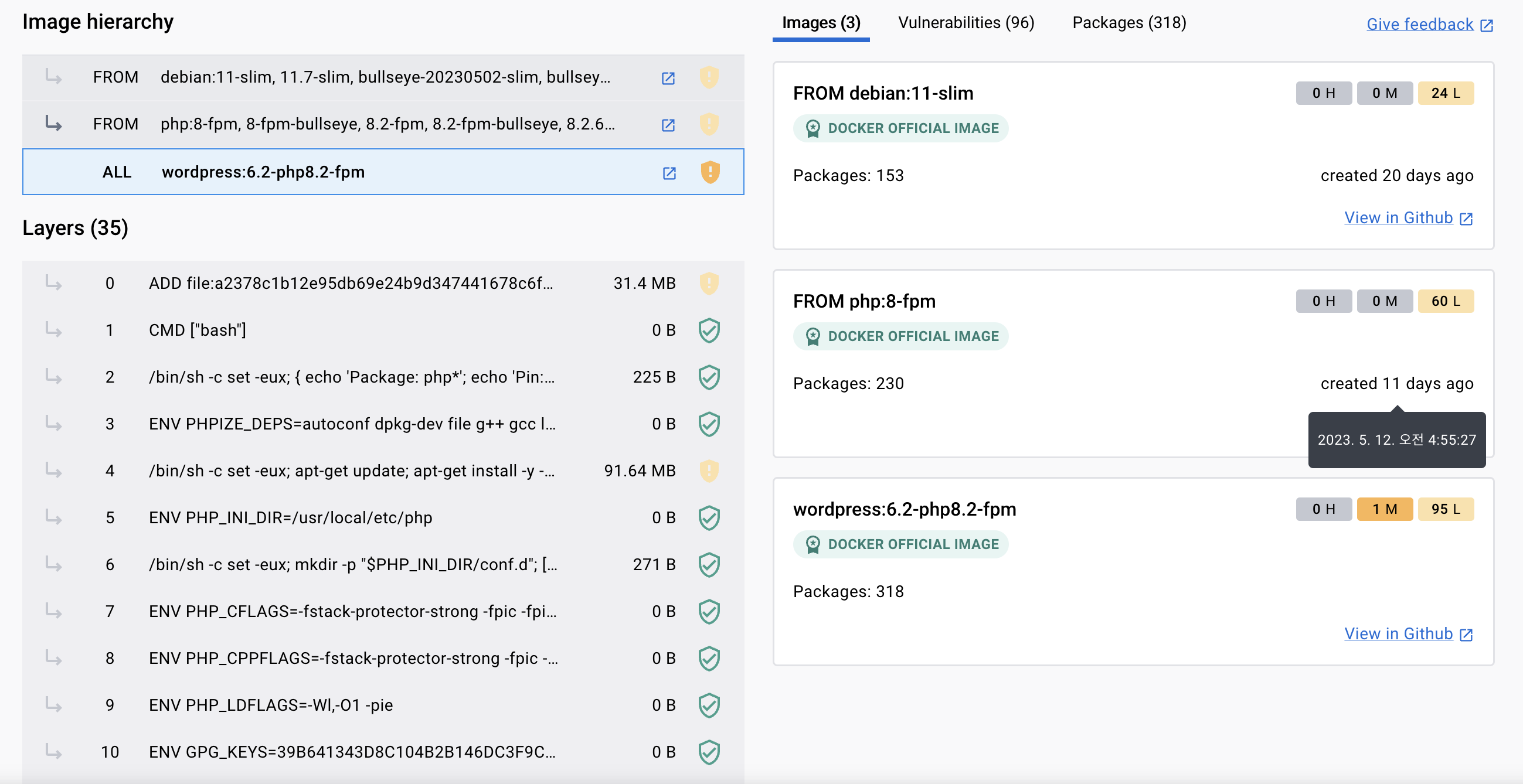 처음은 dabian:11-slim을 받는다 그것을 php:8-fpm 에서 사용하고 또 그것을 wordpress에서 사용하는 식이다.