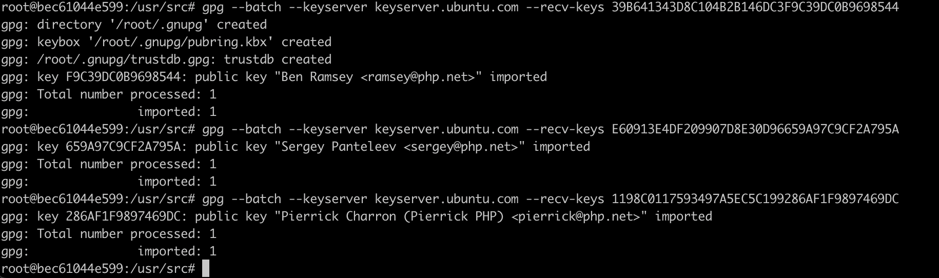 ENV GPG_KEYS 39B641343D8C104B2B146DC3F9C39DC0B9698544 E60913E4DF209907D8E30D96659A97C9CF2A795A 1198C0117593497A5EC5C199286AF1F9897469DC