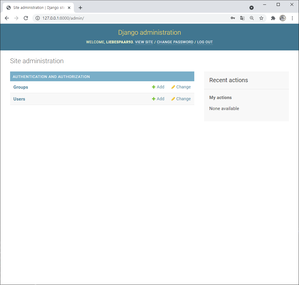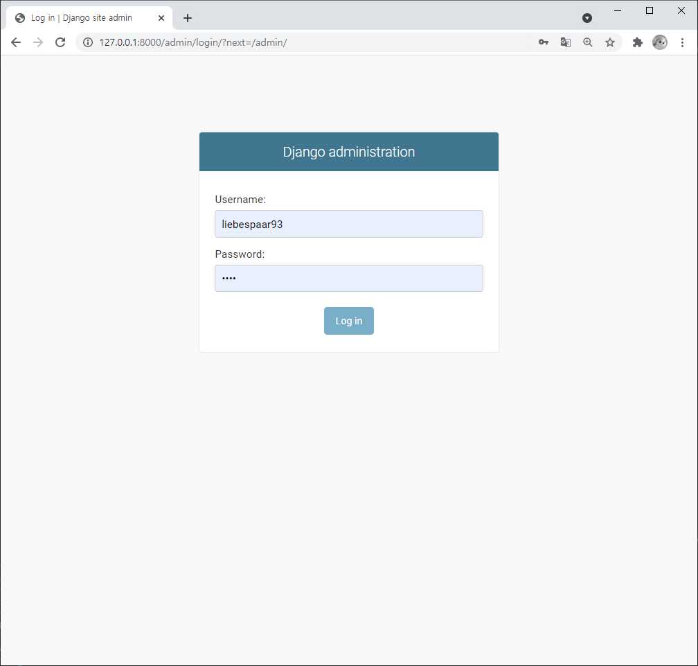 주소 "127.0.0.1:8000/admin" 으로 가보자
