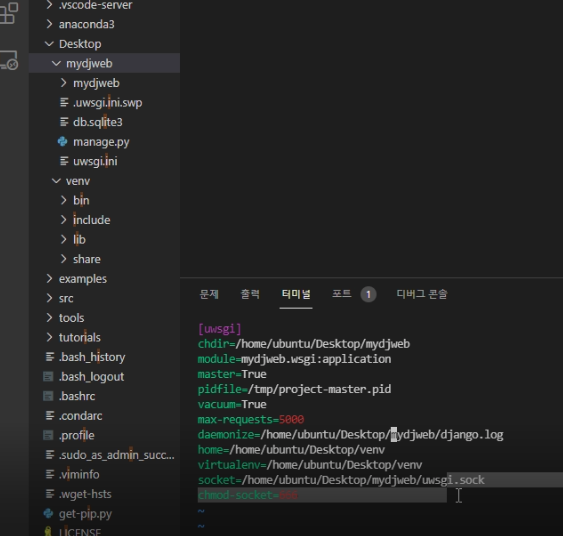socket=/home/ubuntu/{프로젝트 폴더}/uwsgi.sock